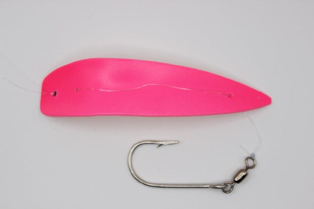 056652143084The 4.0 Apex is a banana shaped trolling lure designed for saltwater Salmon or large Trout trolling applications. The Apex, from Hot Spot Lures, is available in several size options that correspond to the size of bait targeted species are feeding on. The 4.0 Apex, measuring 4" in length, from Hot Spot Lures, is one of the most popular Salmon/Trout trolling lures on the market today due to the vibrating and spinning action at any applicable trolling speed. The Apex is a very easy lure to use - it can be trolled alone or with a flasher and still achieves the desired action and ultimately the desired results. The 3.0 Apex comes stock rigged up with 48" of 20lb leader line, 4 bead chain swivel and a 3/0 siwash hook.