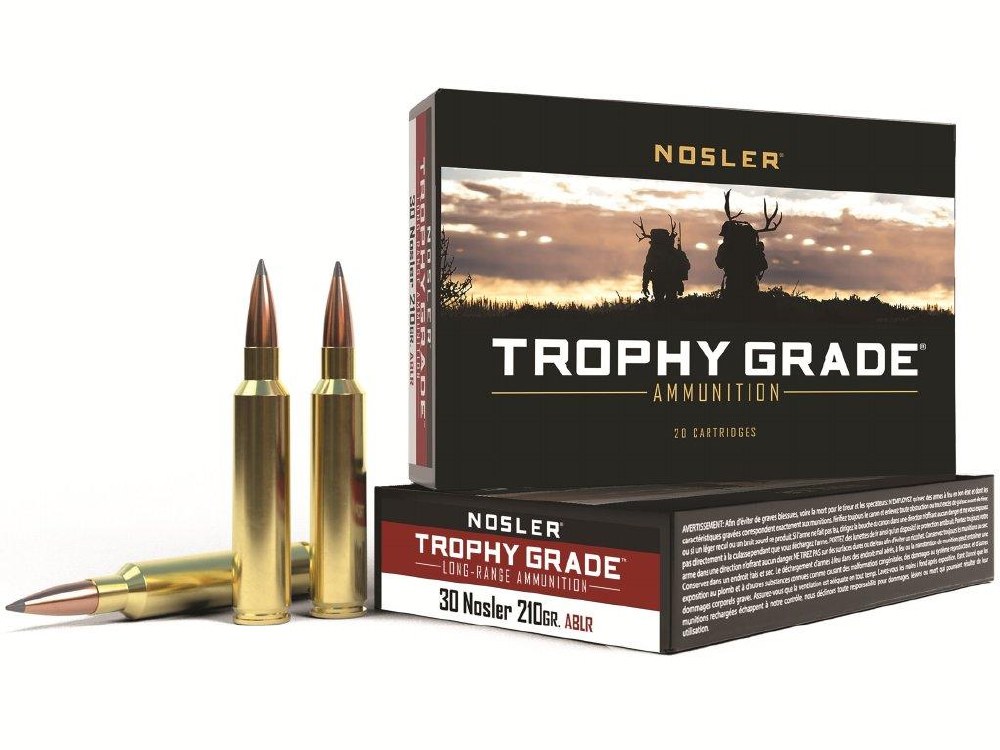 054041601184Trophy Grade LR 30 Nosler 210 Grain AccuBond Long Range Ammo (20ct). Loaded with a AccuBond LR 210 Grain Spitzer Bullet and Nosler Cartridge Brass. The Nosler ballistics team, long respected in the hunting and shooting industry for reliable and precise reloading data, is the driving force behind Nosler Trophy Grade Ammunition. Trophy Grade Ammunition brings Noslers unsurpassed quality standards in accuracy and consistency directly to the shelf of your favorite gunshop or outdoor retailer. Whether you want your ammunition loaded with AccuBond, Partition, Ballistic Tip® or E-Tip, Nosler Trophy Grade Ammunition will have the right load for the right game.